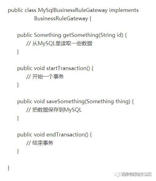 老鸟:最后需要实现BusinessRuleGateway接口,这个实现类会知道相关的数据库细节:
