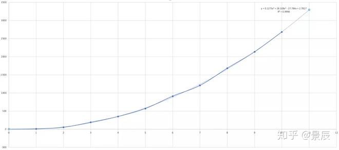 我们可以神奇地发展,阿里历年的销售数据,真的神奇地贴合在一条二次曲线上,这个二次多项式如下: