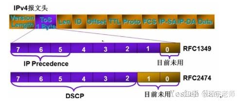 传统IPv4数据包中,在IP报头会有1Byte用作QOS标识,主要分为两种类型: