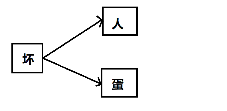 假设我们有以下5个敏感词需要检测:傻逼、傻子、傻大个、坏蛋、坏人。那么我们可以先把敏感词中有相同前缀的词组合成一个树形结构,不同前缀的词分属不同树形分支,以上述5个敏感词为例,可以初始化成如下2棵树: