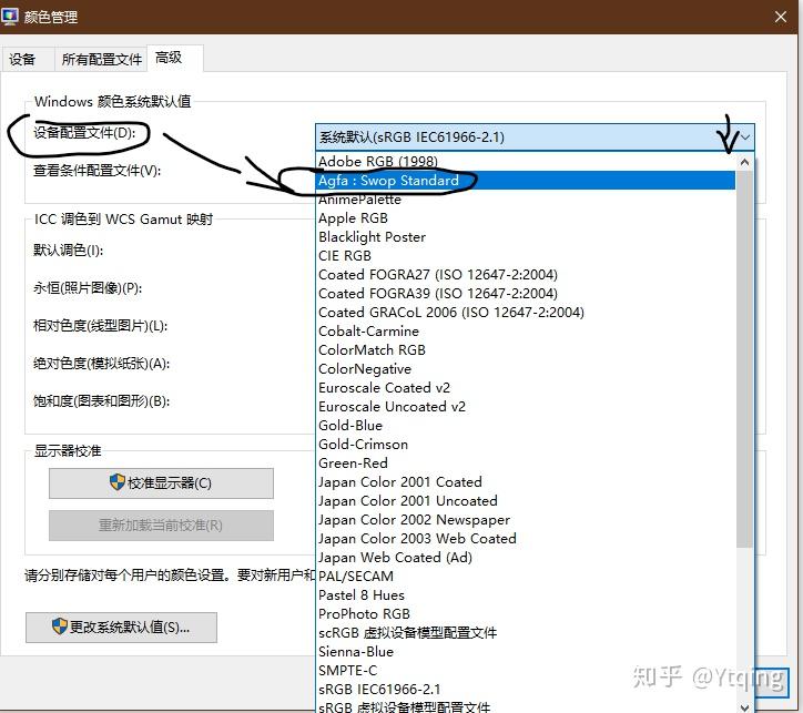 Windows颜色系统默认值(设备配置文件 选择 Agfa:Swop Standard)
