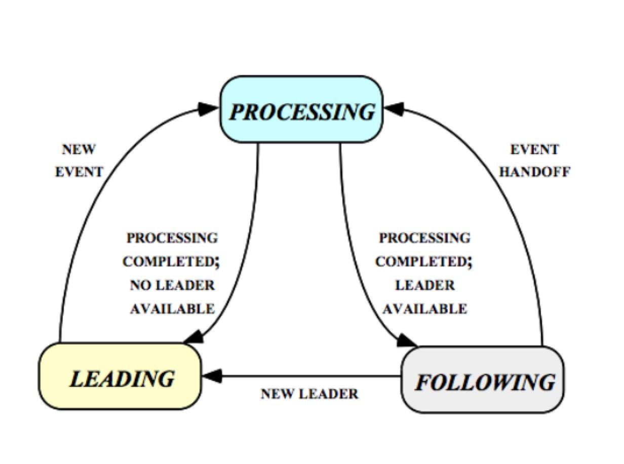 - 可以转移至Processing状态,自己处理该事件,并调用方法推选新领导者。