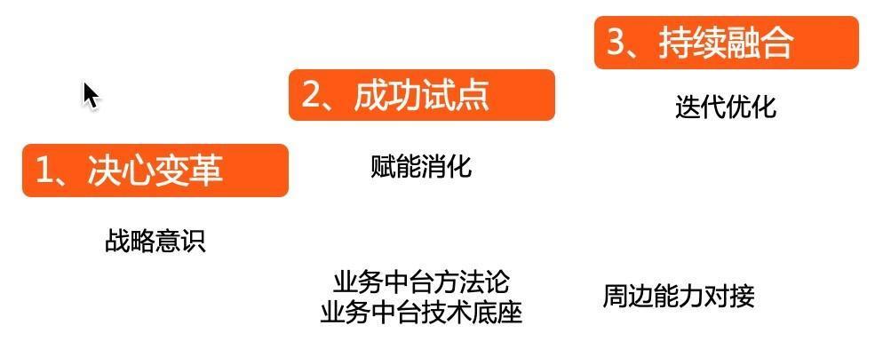 1、战略升级。通过中台建设,落地企业数字化战略。中台一定是“一把手工程”,整体规划分步实施。