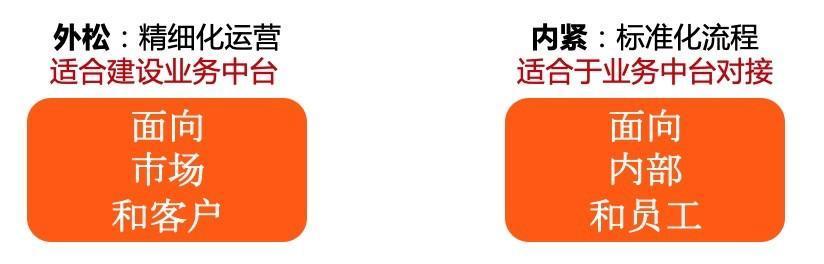 外松:面向市场和客户方面,以精细化运营为驱动,这些系统更适合建设业务中台。对外市场,快速应变,敏捷创新。比如电商、客户管理、全渠道、营销、创新业务。
