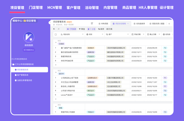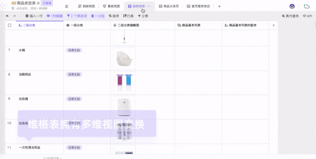 通过不同的筛选、排序条件,让「维格行」实现「 变形 」,让数据从多个维度展现地更加直观。