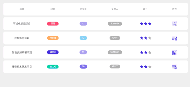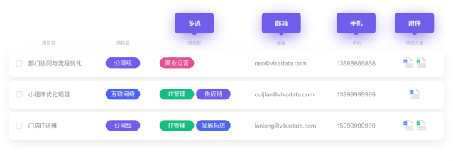单选标签、多选标签、货币、打星、邮箱、电话等等类型丰富「维格列」,带来简洁、美观的数据表视觉体验。