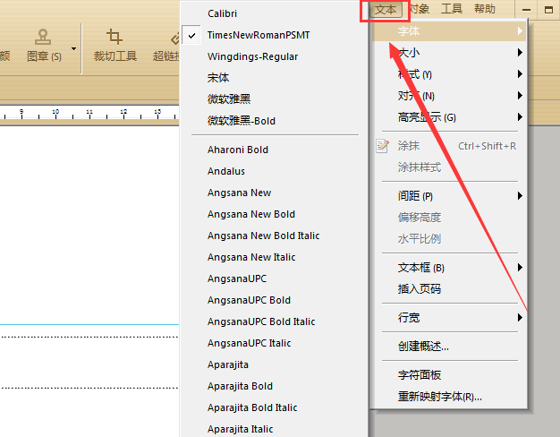 或者也可以通过软件右上角的“文本”中的“字体”选择并更换更多字体。