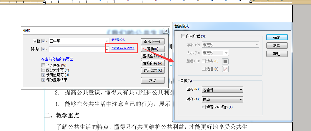 替换的设置页面除以上之外,对于替换后的格式也多了一些设置条件可直接进行修改,一步到位查找并替换到需要的内容。