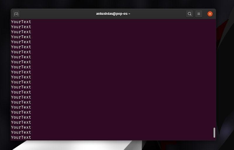 yes 命令帮助你在循环中自动响应直到终止命令。这个命令将会一直打印相同的内容。如果你想快速生成大量垃圾文本,那么此命令将像超级按钮一样工作。
