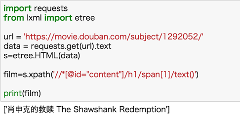 至此,我们完成了爬取豆瓣电影《肖申克的救赎》中“电影名称”信息的代码编写,可以在 Jupyter 中运行。