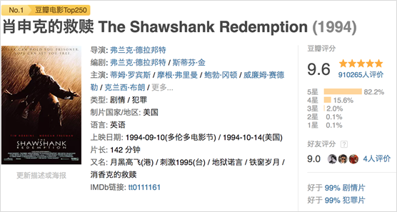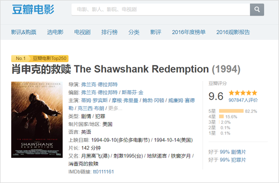 我们要爬取豆瓣电影《肖申克的救赎》上面的一些信息,网站地址是: