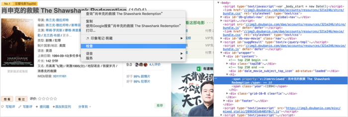 爬虫获取网页信息和人工获取信息,其实原理是一致的,比如我们要获取电影的“评分”信息: