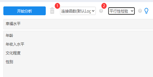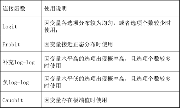 SPSSAU默认使用logit连接函数,如果模型没有特别的要求,应该首选使用logit连接函数,尤其是因变量的选项数量很少的时候。连接函数可能会对平行性检验起到影响,如果平行性检验无法通过时,可考虑选择更准确的连接函数进行尝试。正常情况下使用默认的logit连接函数即可。