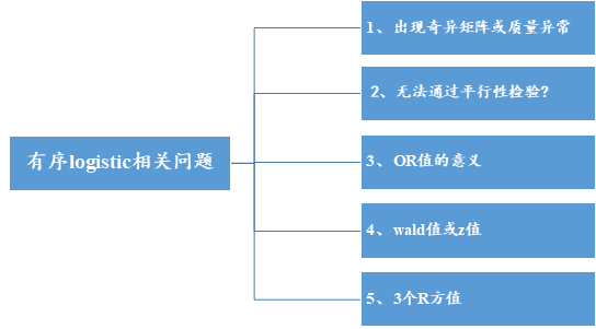 进行有序logistic回归时,通常需要有以下步骤,分别是连接函数选择,平行性检验,模型似然比检验,参数估计分析,模型预测准确效果共5个步骤。
