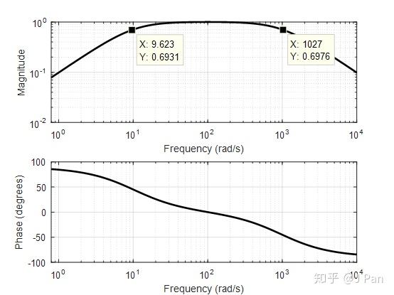 为截止频率,当N=1时时就是我们选择的那个标准的一节惯性环节,感兴趣的童鞋可以试一下这类函数的性质。这类函数最早是由一个叫butterworth的人提出的,因此,基于这类函数而衍生的滤波器就是butterworth滤波器,MATLAB就用butter函数来致敬butterworth。