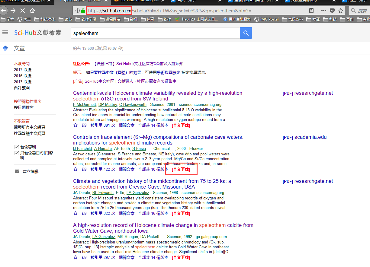 下面在网址上加http://sci-hub.cc的方法,目前可以改成加http://sci-hub.tw,这样还是可以用的。