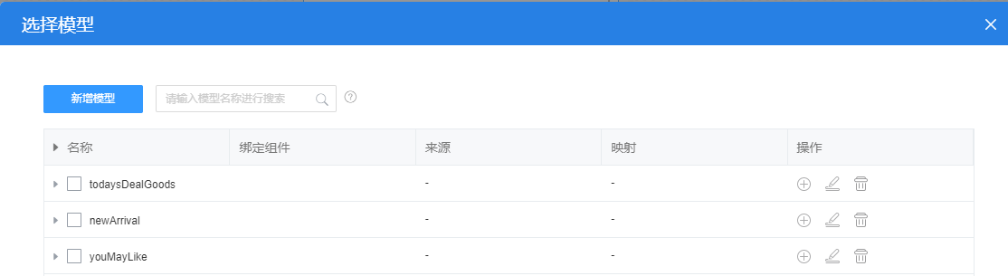 如图所示,点击值(value)框中的设置图标,可以对模型进行管理,以及将数据和对应的模型做绑定,类似于v-model。