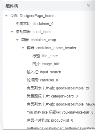 在CSS下方,有个不起眼的组件树,也会经常使用到,通常是用于帮助我们精准的选择组件。因为组件有时候会有重叠或遮盖等情况,那时就不方便在可视化区域中点选组件了。展开如下图。