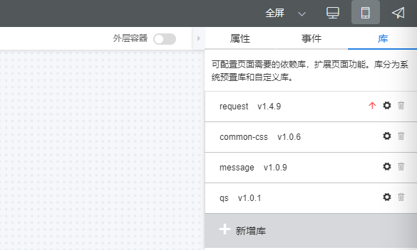 首先是库的导入,也就是Vue中的import,当前标准页面依赖到的库,都要在这里导入,甚至有时候要在跳到此页面的前一个页面导入。截止目前,标准页面暂时不支持库的全局导入,高级页面是可以的。
