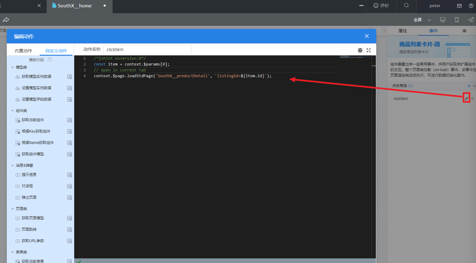 再稍微详细点,如下图,如果组件的事件那里没有这个小笔图标,则表示这个组件没有暴露事件出来。反之则组件具备事件,可以通过点击小笔图标,进入到该事件的编辑窗口。