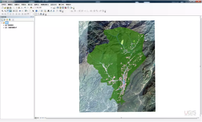 如图2.3,当我们将上述图2.1、2.2所示两个不同数据加载到同一个MXD图层框架中时,两个不同坐标系不同的数据图层能自动对齐,这就是ArcGIS中神奇而又强大的动态投影。