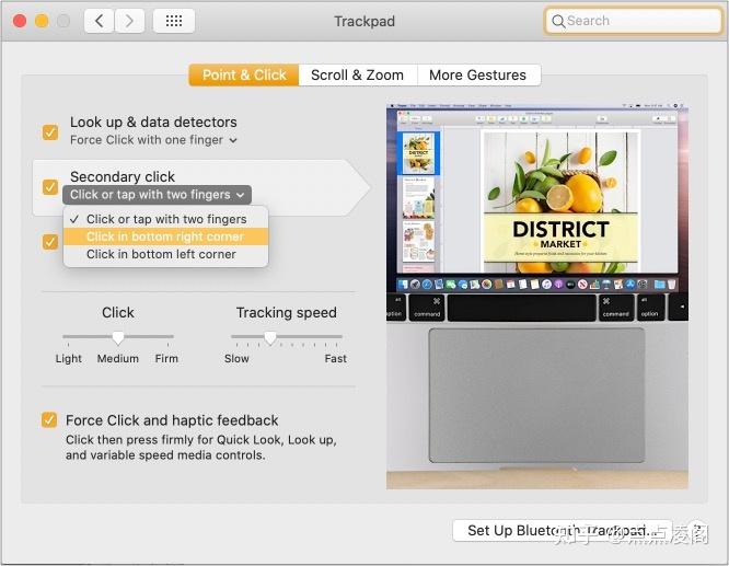 如果您更喜欢用一根手指单击鼠标右键,macOS也可以使您做到这一点。为此,请执行上述相同的步骤,然后在步骤4中,选择“在右下角单击”。