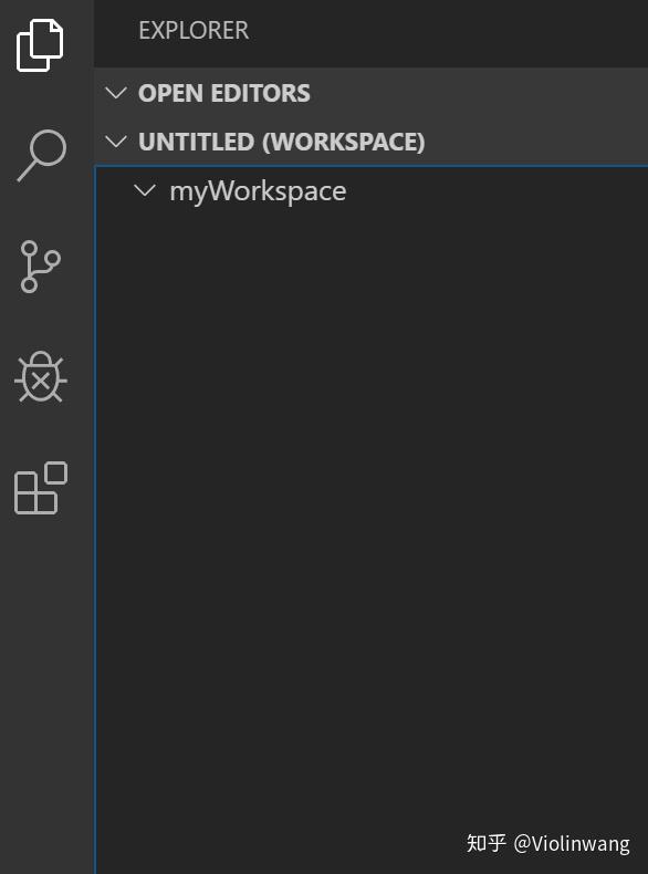 首先要注意的一点是,如果要对一个程序进行调试,vscode要求必须建立workspace。并且,每个workspace的配置文件是独立的。首先,在某个位置建立一个空文件夹(路径中不得有中文。推荐放在根目录下,比如D:\VSCodeProjects\myWorkspace\),然后打开vscode,在File菜单中点击Add Folder to Workspace,选中刚刚新建的文件夹。完成以后应该是这个样子(记得点击左侧边栏第一个按钮切换到资源管理板块):