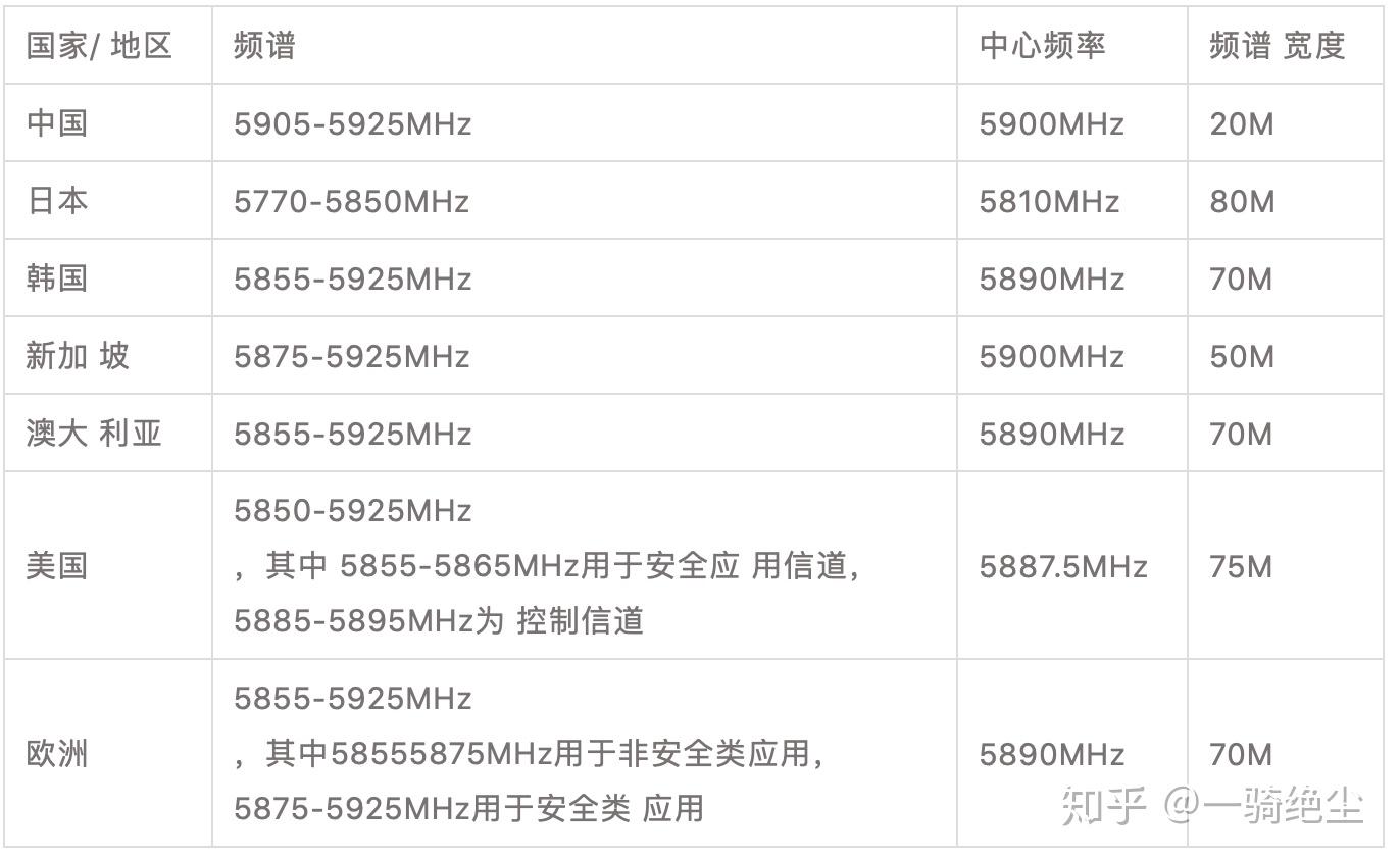各国车联网频率资源分配情况