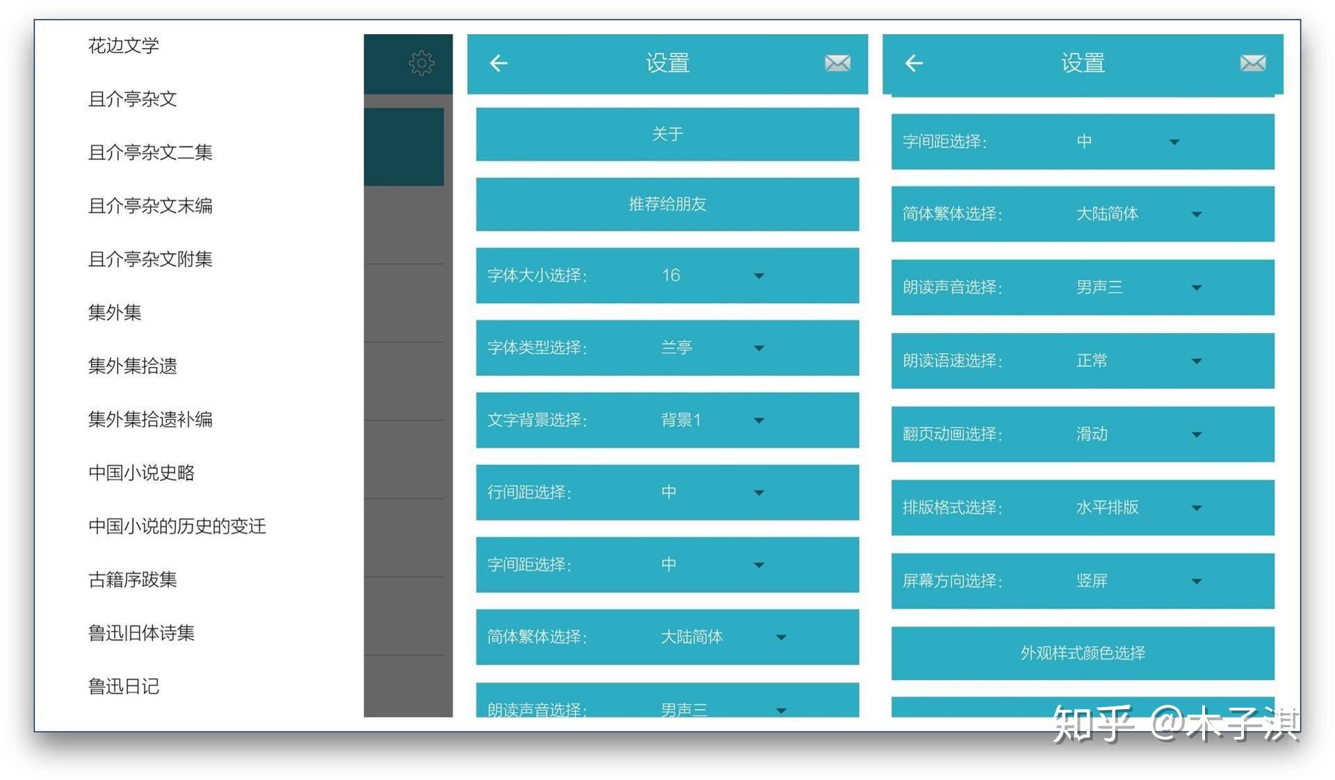 它支持非常全面的设置功能,你可以设置字体大小、字体类型、文字背景、行间距、字间距、简体繁体、朗读声音、朗读语速、排版格式、屏幕方向。