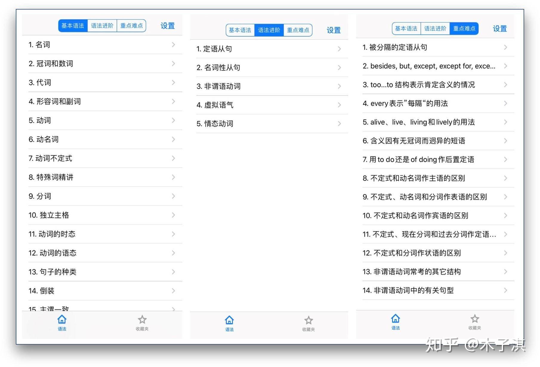 它支持实用的英语语法学习功能,包括:基础语法、语法写作、语法讲义、语法题库、模拟考试、错题回顾;其中基础语法学习包括:名词、冠词、代词、形容词和副词、动词、动名词、动词不定式、分词、独立主格、动词的时态和语态、句子的种类、倒装、主谓一致、虚拟语气、定语从句、状语从句、情态动词。