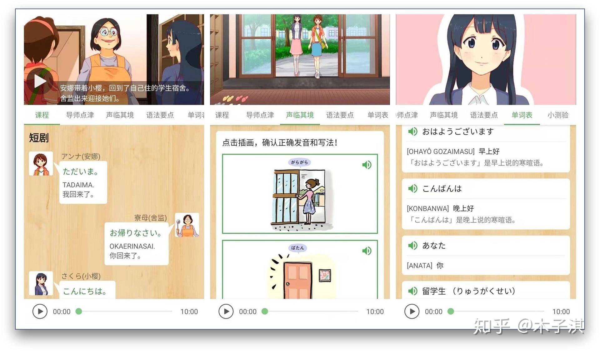 它的每一个课程里面还包括了:课程具体对话、导师点津、声临其境、语法要点、单词表、小测验。