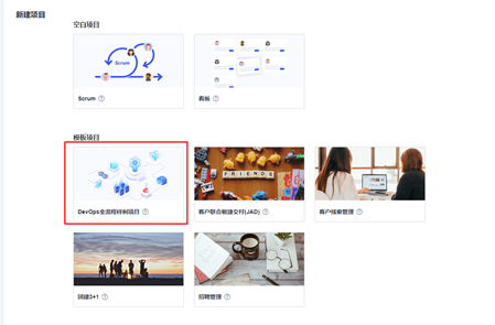 在华为云DevCloud中创建项目时选择DevOps样例项目,即可创建出预置了代码仓库、编译构建、部署等任务的DevOps样例项目,此项目即HE2E项目。
