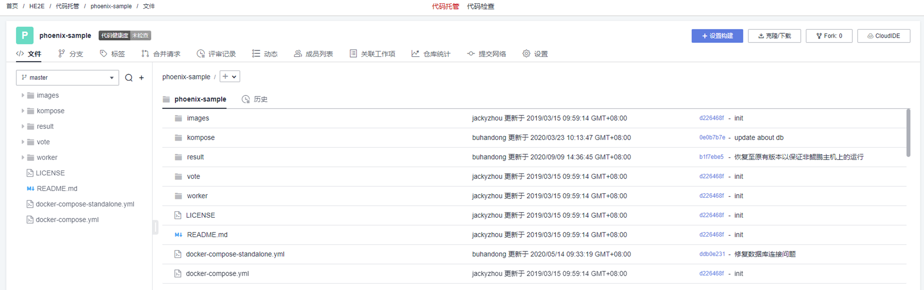 HE2E项目中预置了代码仓库phoenix-sample。