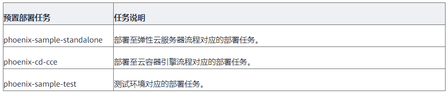在整个实践中,提供了ECS部署和CCE部署两种方式,并且在项目中预置了3个部署任务。