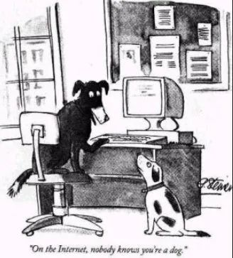 1993年,美国著名杂志《纽约客》的漫画家施泰纳创作了这样一幅荒诞却广为流传的漫画,真切地体现了互联网世界的公开性与匿名性。