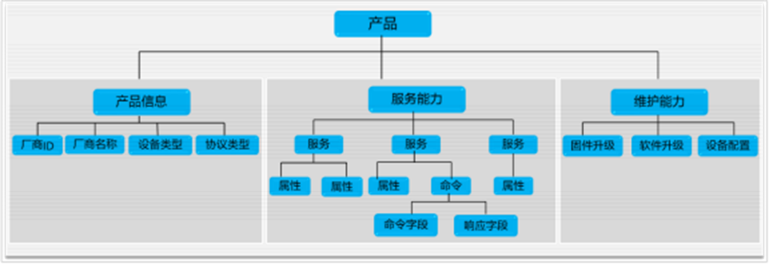 产品信息:描述一款设备的基本信息,包括厂商ID、厂商名称、设备类型、协议类型。例如:水表的厂商名称为“HZYB”,厂商ID为“TestUtf8ManuId”,设备类型为“WaterMeter”,协议类型为“CoAP”。