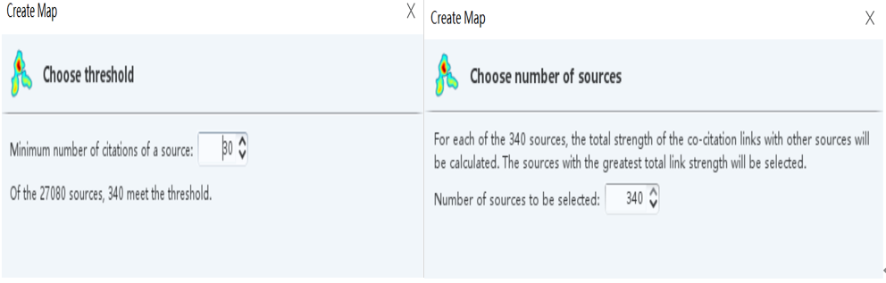引用来源的阈值默认为20 ,也可以根据文献数量适当修改,相应地,要分析的来源数量也可以合理调整。