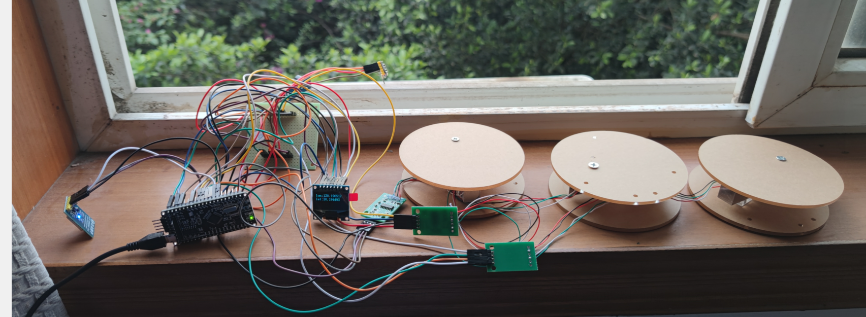 (3)本地OLED显示屏显示GPS经纬度数据、称重传感器的数据值。