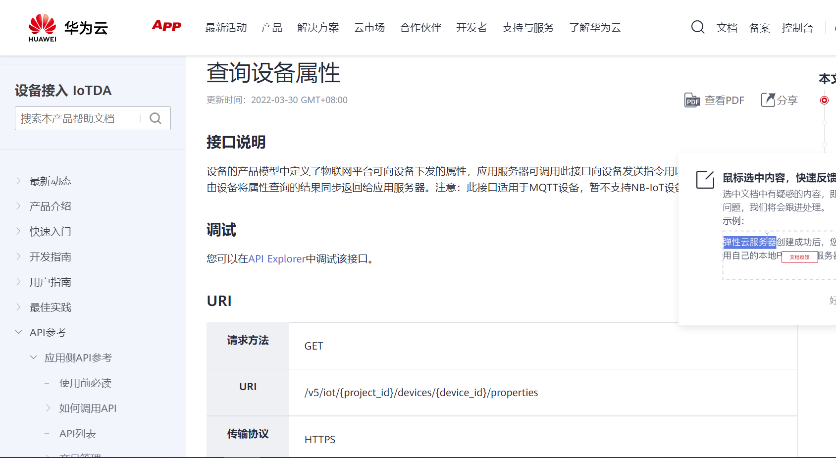 帮助文档地址: https://support.huaweicloud.com/api-iothub/iot_06_v5_0034.html