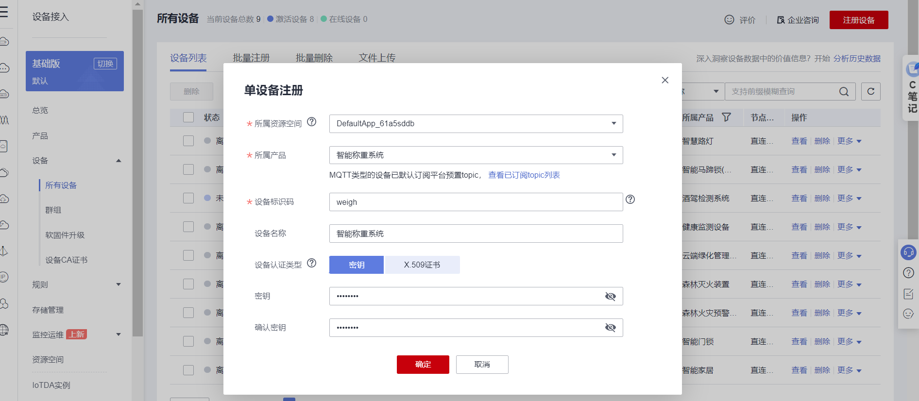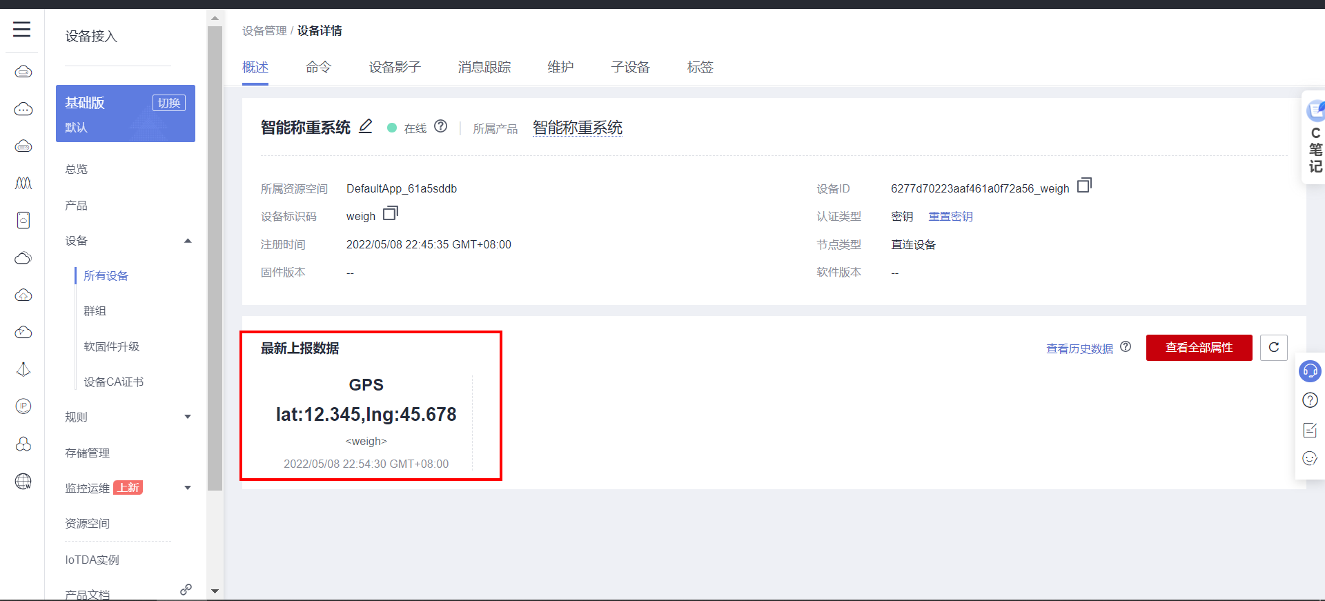 地址: https://console.huaweicloud.com/iotdm/?region=cn-north-4#/dm-portal/device/all-device