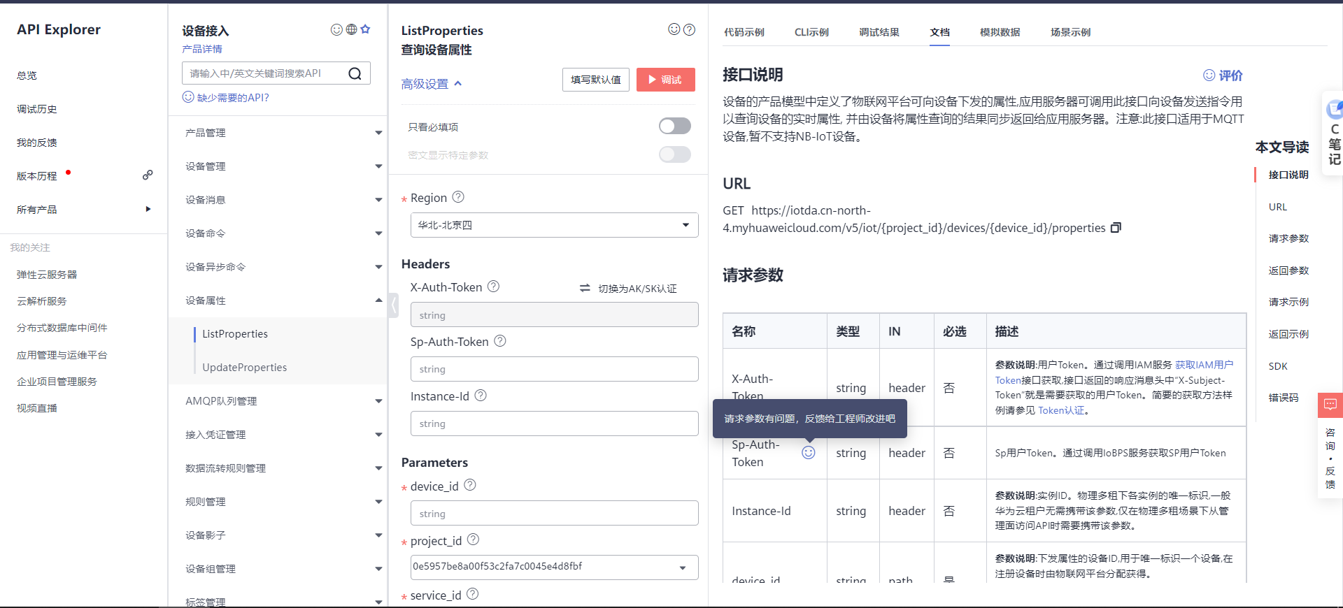 https://apiexplorer.developer.huaweicloud.com/apiexplorer/doc?product=IoTDA&api=ListProperties