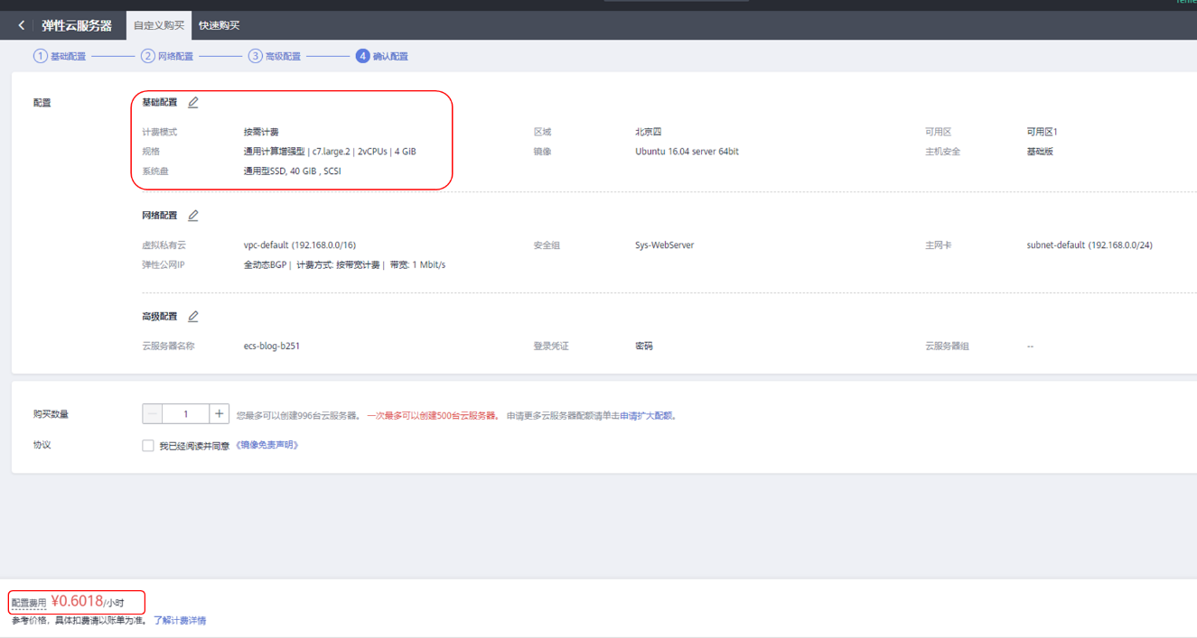 具体的计费可以看一下,Ubuntu16.04的计费如下,0.6018/小时。