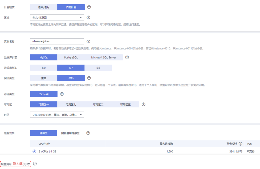 云数据库RDS的收费情况如下,基本配置0.40/小时。