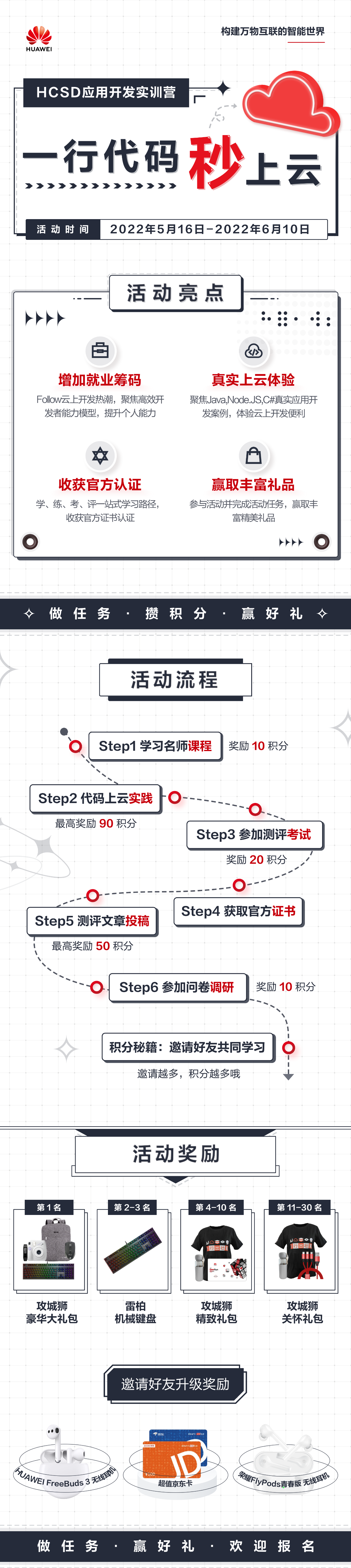 在上文中,我只写了自己的个人体验和上云过程中的一些关键步骤,如果你对以上实验的完整上云过程感兴趣,可以来参加一行代码秒上云应用开发实训营,体验资源免费领,真场景真体验,云上应用开发轻松实现。