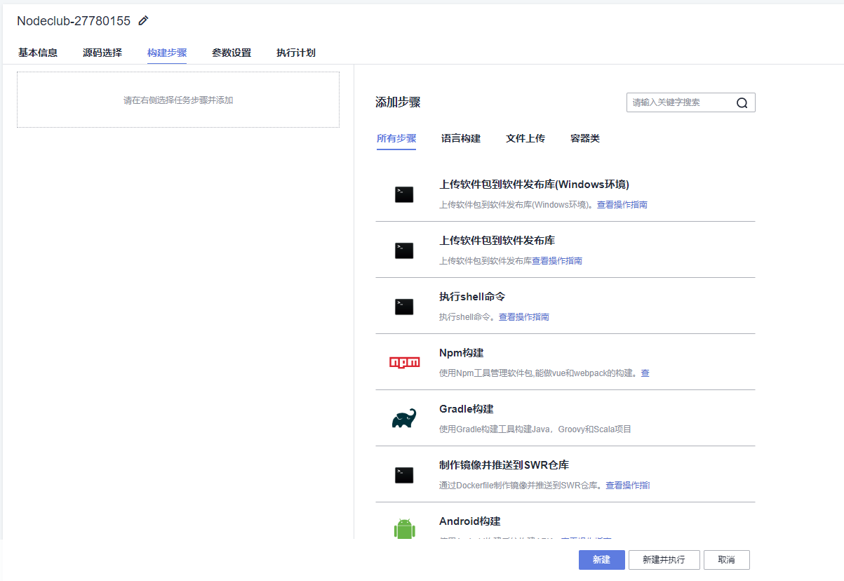 其中workerman-todpole社区系统的构建工具是php7.3.3,“小幺鸡”在线文档管理平台的构建工具是maven3.5.3-jdk8-open,NodeClub社区系统的构建工具Shell命令,这些在编译构建服务中都能覆盖,除此之外还有其他的模板和空白模板可以选择。