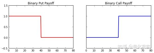 对于我们的模拟,我们将研究现金或无现金二元期权。 二元看涨期权和看跌期权的收益如下所示。