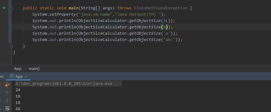 System.setProperty("java.vm.name","Java HotSpot(TM) "); System.out.println(ObjectSizeCalculator.getObjectSize(3L));