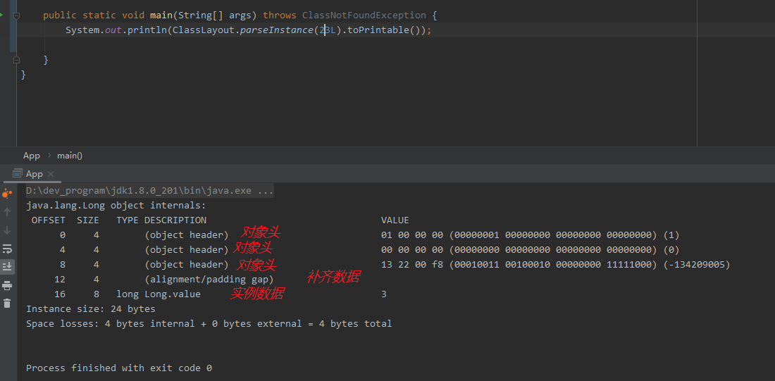 System.out.println(ClassLayout.parseInstance(23L).toPrintable());