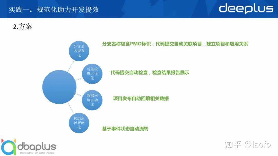 因为我的代码已经跟它关联起来了,在开发中如果是提交到代码,可以自动从项目已排期状态变成开发状态。当我做了一些Beta验证的时候,就可以自动地流转到我现在是要提测了或是要发布了,所以这个状态的流转实现了智能化。结合完整的方案,我们就解决了各种开发被打断,自动化手动操作过多的问题。