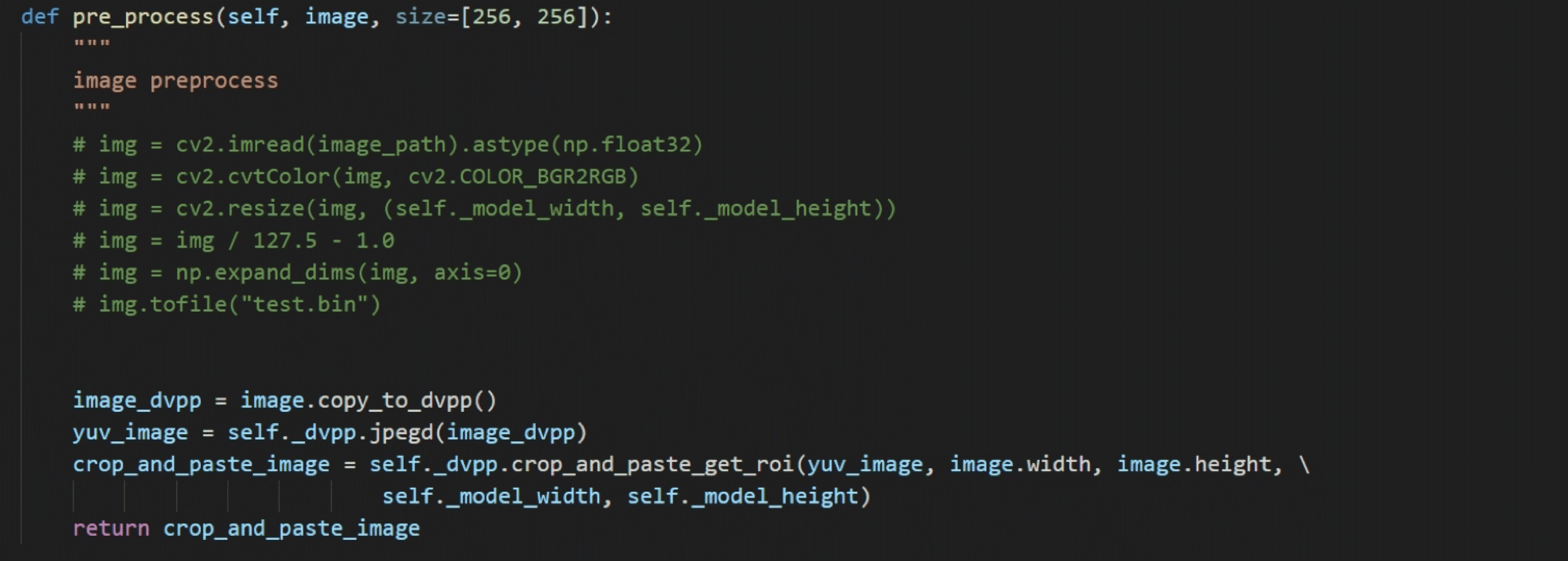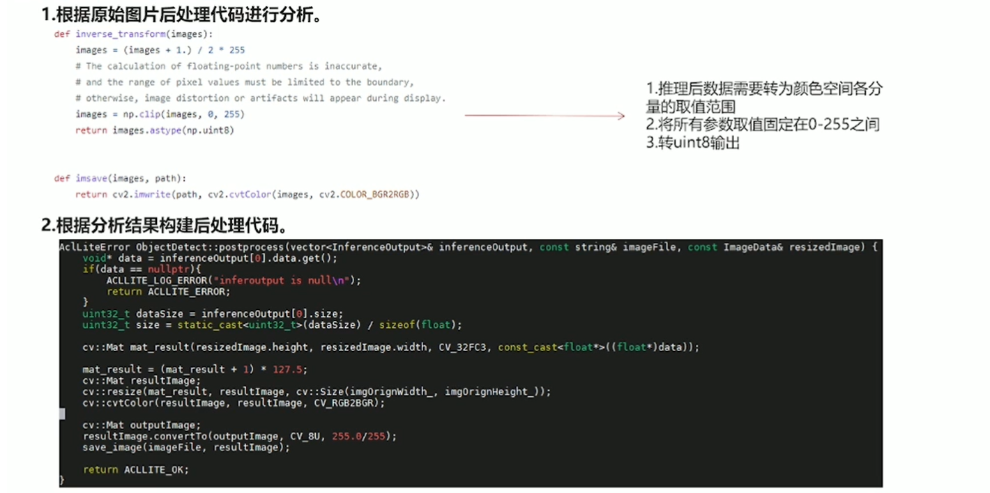 使用DVPP对读入图片进行解码,并缩放至256 × 256分辨率,以符合网络输入大小;在模型转换时,使用AIPP功能,将unit8的数据转换为fp16格式,将0~255的数值归一化到-1~1,将BGR的图片格式转换为RGB格式。